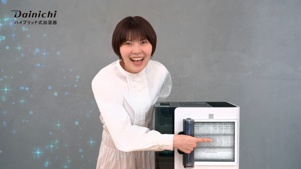 TVCMに登場するのは加湿器LXタイプ。交換するだけ、スライドするだけでかんたんにお手入れができます。