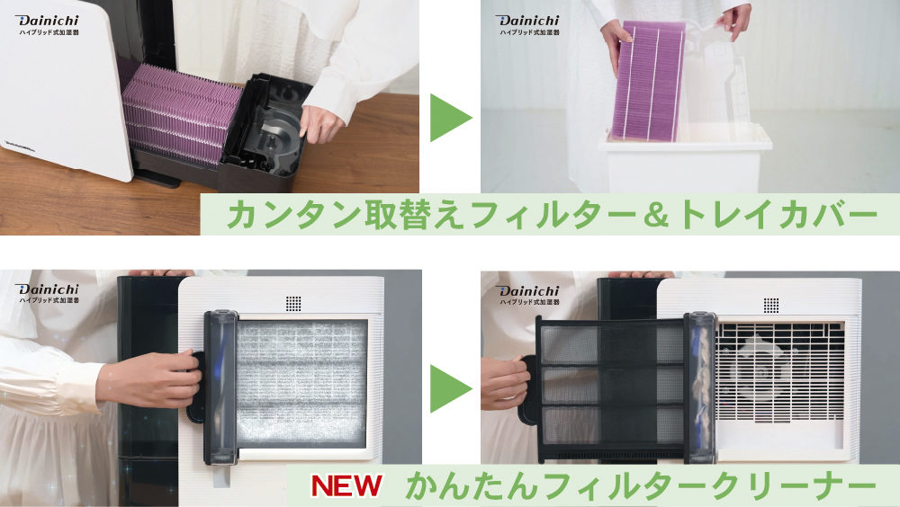 「カンタン取替えフィルター」、「カンタン取替えトレイカバー」は汚れたら捨てるだけ!フィルターもトレイ も洗わずにサッと交換したい方にオススメです。