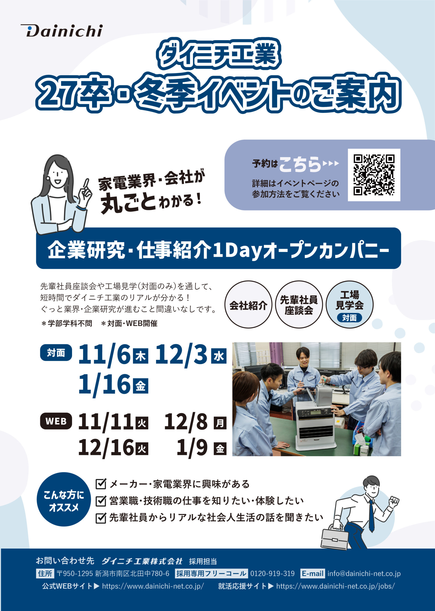 【27卒】秋季イベント「企業研究・仕事紹介1Dayオープンカンパニー」を公開しました