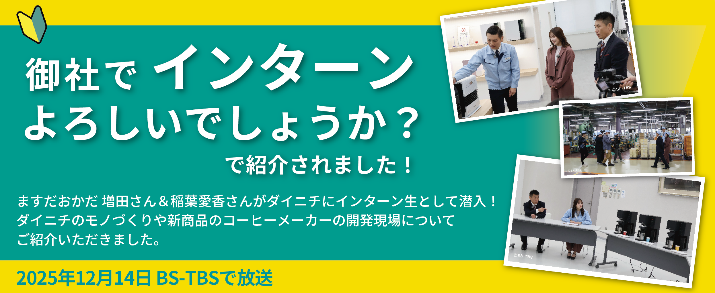 BS-TBSの『御社でインターンよろしいでしょうか?』(2025年12月14日放送)にて、ダイニチ工業が紹介されました。
