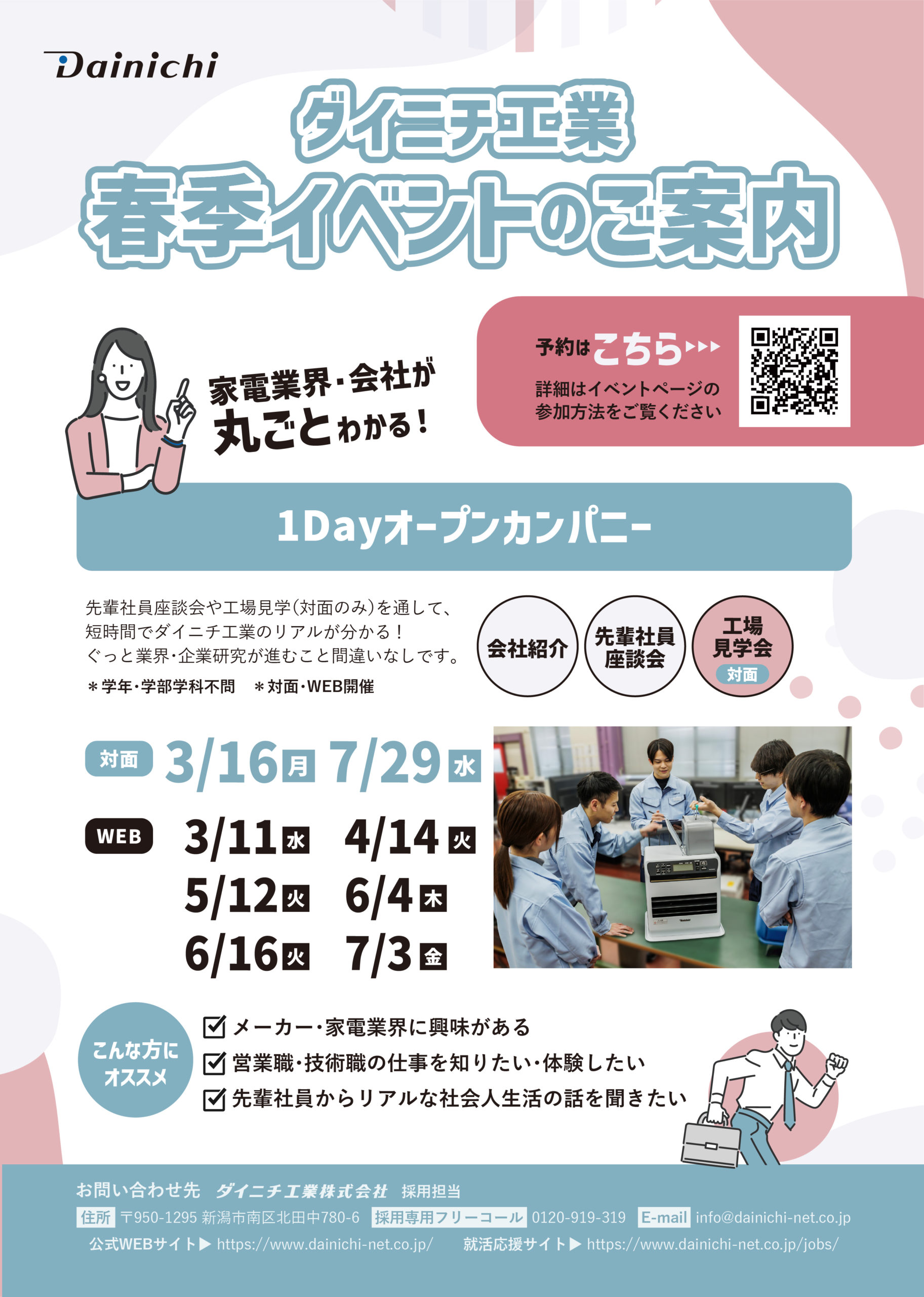 2026.03.10 春季イベント「1Dayオープンカンパニー」の日程を公開しました 家電業界・会社が丸ごとわかる! 春季イベント「1Dayオープンカンパニー」の日程を更新しました。 *学年・学部学科不問 *対面・WEB開催 みなさまのご参加をお待ちしております! イベントの詳細はこちら 【テレビ】BS-TBS「御社でインターンよろしいでしょうか?」で紹介...