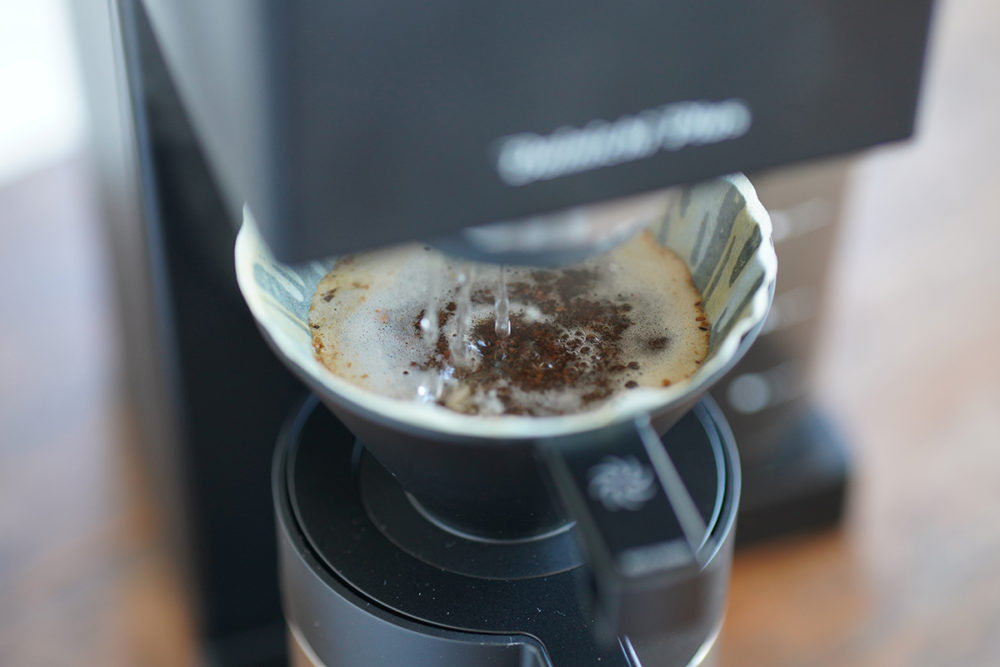 小野 注ぎ方で味が大きく変わるので、何秒で何グラム注ぐか、などを開発のみなさんに実際に見てもらいました。注ぎで湯が粉にかかる範囲を広げ、粉と湯がよく触れるようにして攪拌できれば理想的でしたが、機構上そのまま再現するのは難しかった。そこで開発のみなさんが、当初2つにしていたノズルの穴を1つ増やして3つにし、粉を躍らせることに成功したのです。これには驚きました。意図を理解して別の方法で解決していく姿勢に感心しましたし、毎回のアップデートぶりには開発の熱意を感じました。